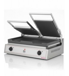 Perfecta para bares concurridos, cafeterías de ritmo alto, food trucks o cocinas colectivas, este modelo está fabricado en acero inoxidable y equipado con placas acanaladas antiadherentes que garantizan un tostado perfecto y una limpieza ágil. Su placa superior basculante asegura un contacto uniforme, sin aplastar el producto.