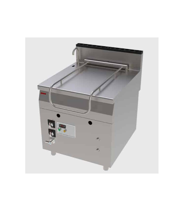 La SB70M de Jemi es una sartén basculante a gas con elevación motorizada, diseñada para cocinas profesionales que requieren eficiencia, ergonomía y gran capacidad.