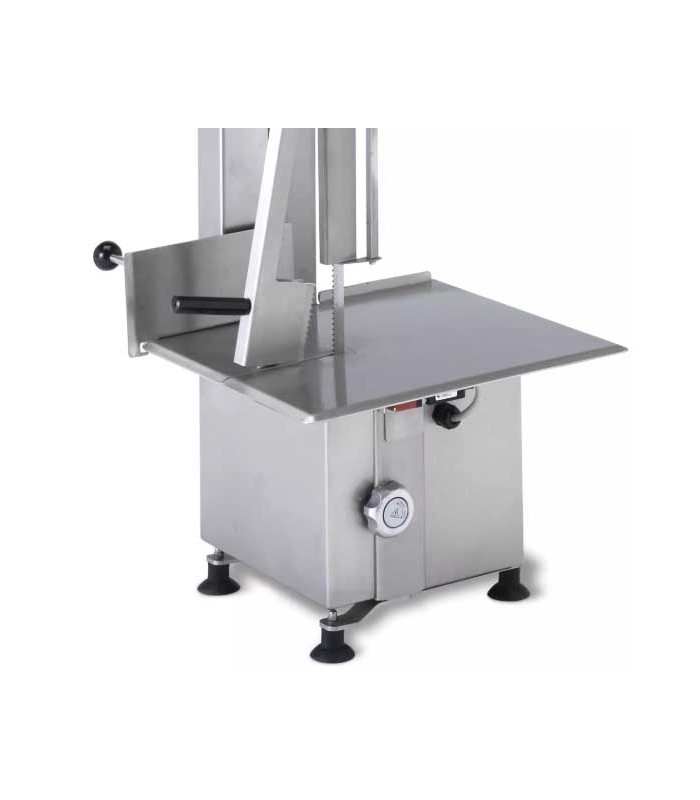 La Sammic SH-182 trifásica es una sierra profesional de sobremesa para uso continuo, diseñada para quienes trabajan con cortes anchos, huesos duros o carne congelada.