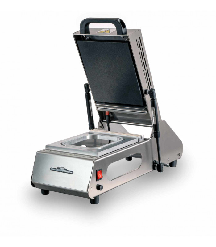 Ideal para restaurantes, tiendas y caterings, esta máquina asegura un sellado rápido y eficiente barquetas 1/4GN (260x160mm), cumpliendo con las normativas de seguridad alimentaria y optimizando el almacenamiento de alimentos.