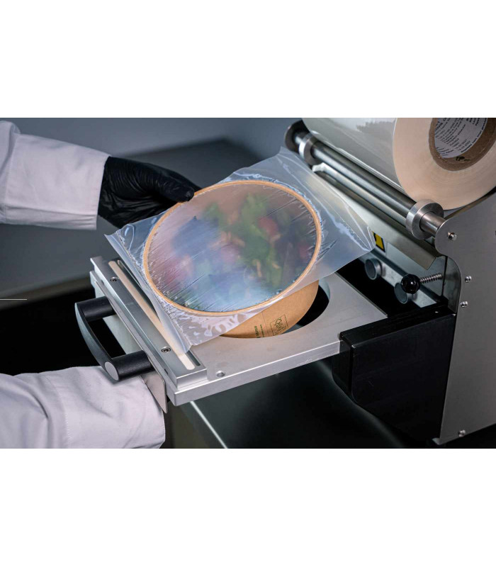 Ideal para colectividades, tiendas y caterings, esta máquina asegura un sellado rápido y eficiente.