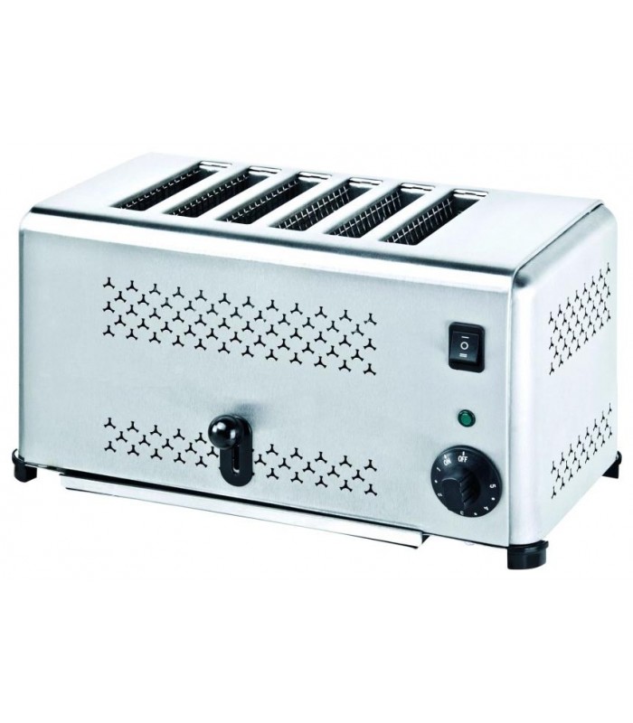 Tostador de pan Pujadas P15041 con seis ranuras con diseño compacto y construido en acero inoxidable, asegurando durabilidad y longevidad, además ofrece un calor rápido y potente con el que podremos tostar más de 120 rebanadas por hora.