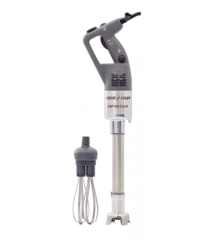 Cuando una cocina profesional exige más capacidad y más potencia, el Robot Coupe CMP 300 Combi responde con fiabilidad. Este modelo cuenta con un brazo triturador de 300 mm de longitud, ideal para trabajar en cubetas y ollas más profundas, y un batidor de varillas de alto rendimiento, todo ello con un motor de 350 W y velocidad variable.