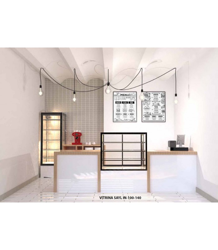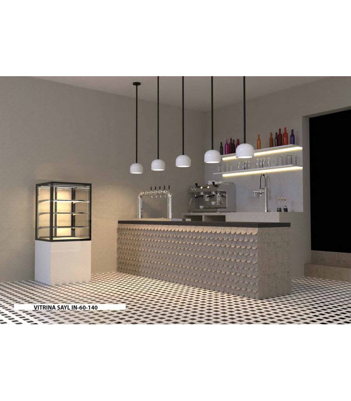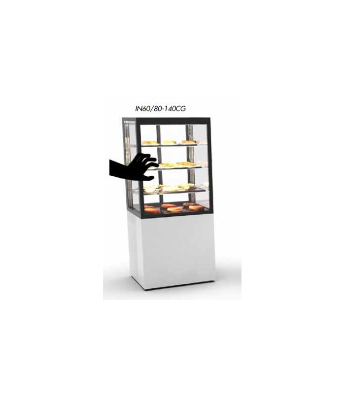 Vitrina expositora caliente con base 60 SAYL IN-60/80-140CG frontal abierto (grab&go). Una vitrina versátil, caliente de gran capacidad de lineas rectas, ideal para qualquier tipo de empresa alimentaria.. Con un diseño apto para todo tipo de entornos, incluso los más sobrios. Dotada de 3 grandes estantes, sin necesidad de instalación, construcción sin tornilleria, visión total.