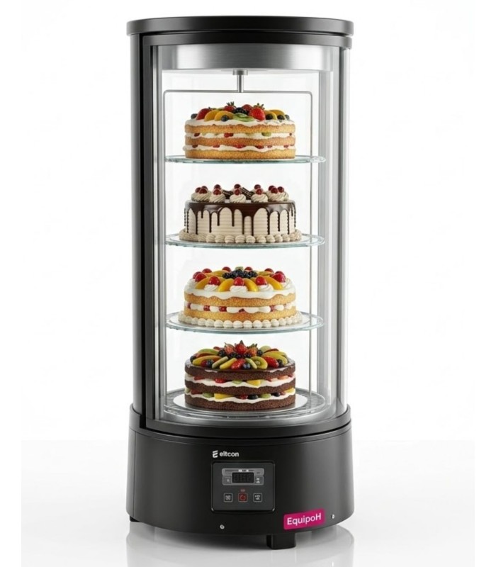Vitrina expositora refrigerada EDENOX VEPS-72 sobremesa 360º compacta, diseñada para maximizar la visibilidad del producto en espacios reducidos. En EquipoH la recomendamos por su formato compacto, estantes giratorios y refrigeración ventilada.