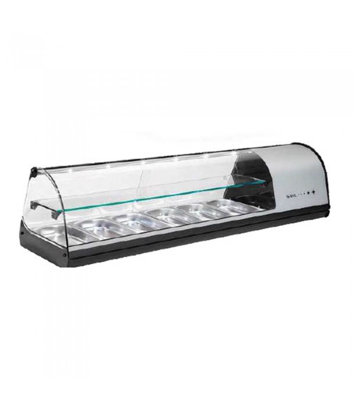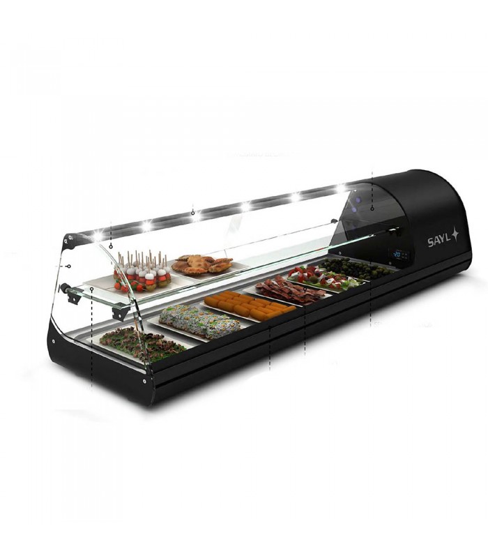 Vitrina expositora sobrebarra de dos pisos para tapas con 8 espacios, sin bandejas SAYL V28NP.